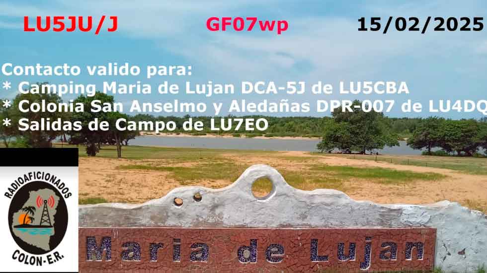 Diploma Campings Argentinos – El 15 de febrero 2025, se realizará la activación radial del Camping María de Lujan. LU5JU/J – Radio Club Concepción del Uruguay estarán operando en 10m 20m y 40m en modo SSB. El Centro de Radioaficionados CBA les asignó la referencia DCA-5J del Diploma Campings Argentinos.