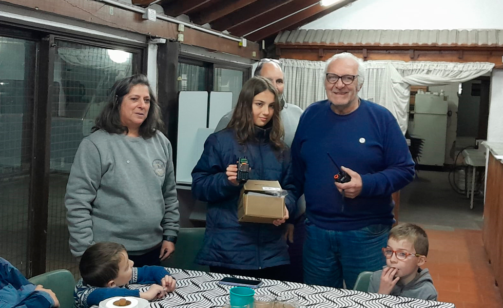 Al finalizar la activación, los chicos que formaron parte de la experiencia participaron de un sorteo de un handy Baofeng, gentilmente donado por Pablo (LU7ATI). La ganadora fue Ana (LU9ANI), quien recibió el equipo en medio de la alegría de sus compañeros.