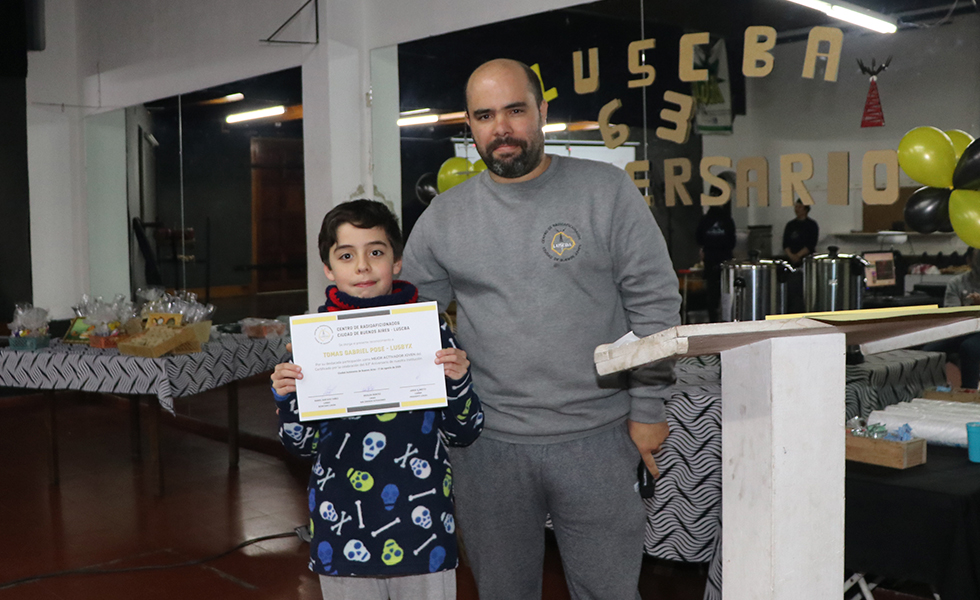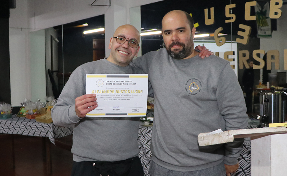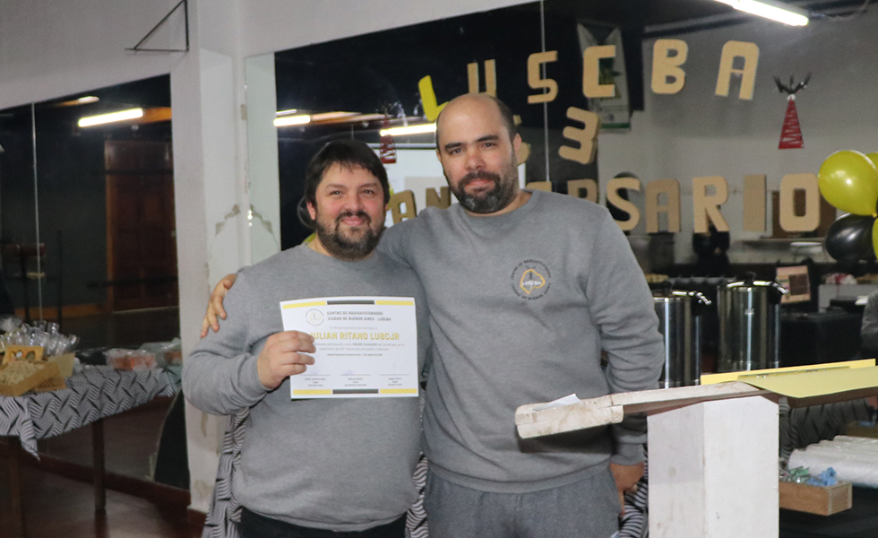 Uno de los momentos de la noche llegó con la entrega de certificados a los operadores que participaron del “Certificado 63º Aniversario LU5CBA”, un reconocimiento al entusiasmo y la dedicación de quienes estuvieron en el aire acompañando la celebración desde distintas estaciones.