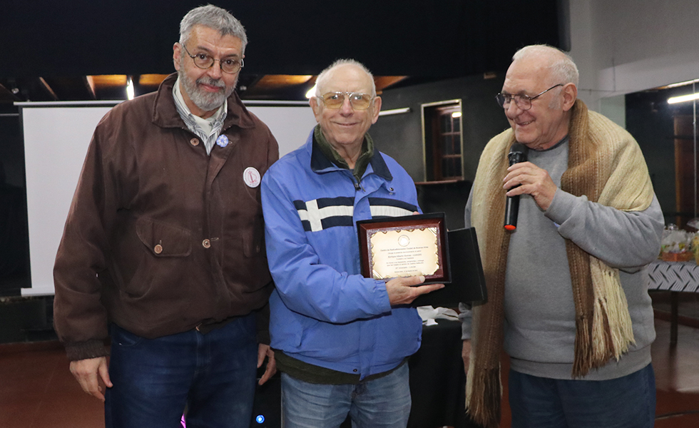 La emoción se hizo sentir con la entrega de una placa de reconocimiento al señor Enrique Gómez, fundador y expresidente de la institución, cuyo nombre permanece ligado a la historia y al espíritu de LU5CBA. El homenaje arrancó aplausos y gestos de gratitud de todos los presentes.