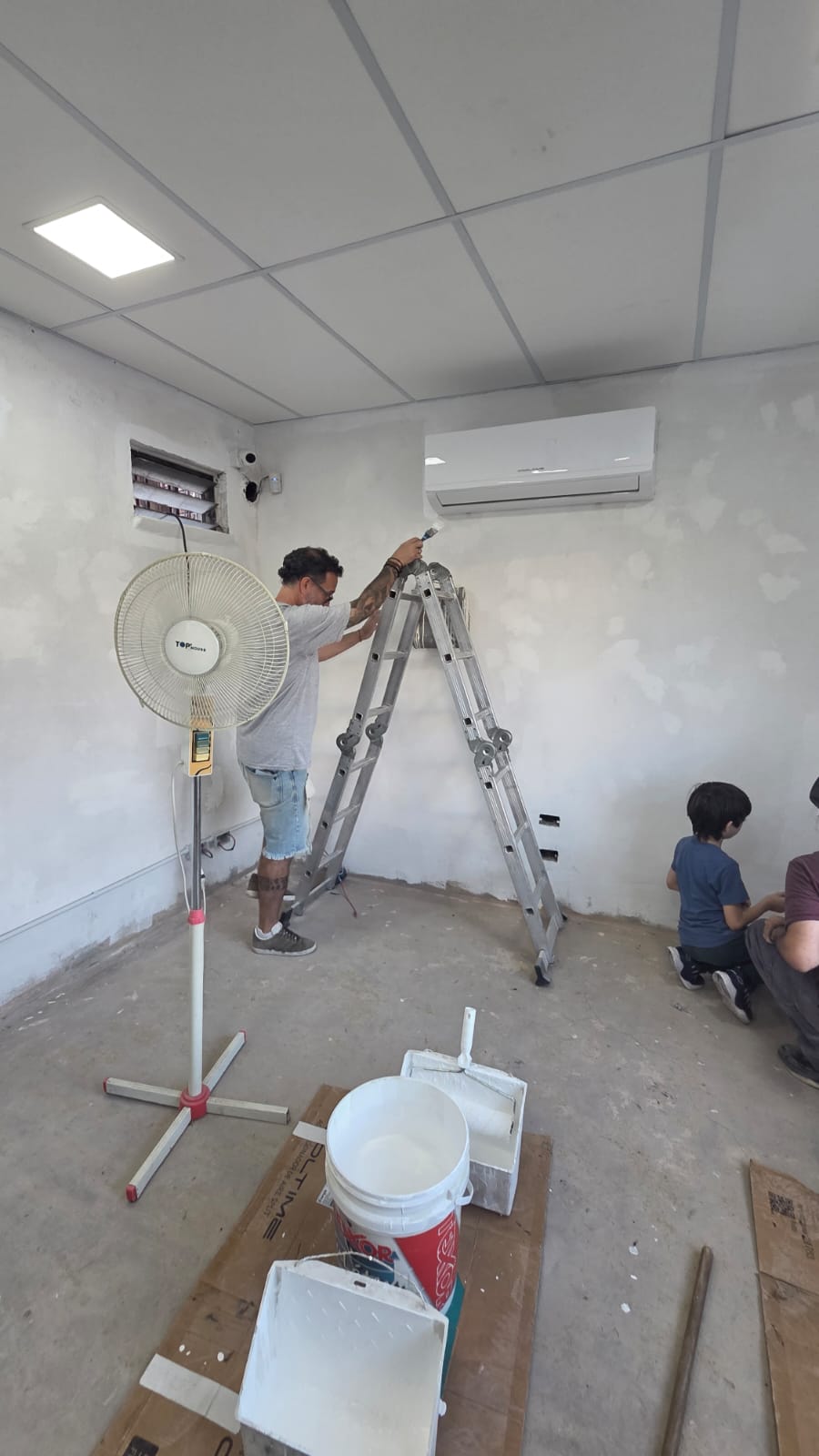 De manera simultánea, el entusiasmo se traslada ahora al interior de nuestra sede. Se continúa trabajando intensamente en la Sala de Radio, donde ya se ejecutan tareas de pintura, reparación de techos y nueva iluminación. Estos trabajos son realizados íntegramente por los radioaficionados, socios y colaboradores del club, cuyo esfuerzo personal está transformando nuestro espacio operativo en un lugar más cómodo y moderno.